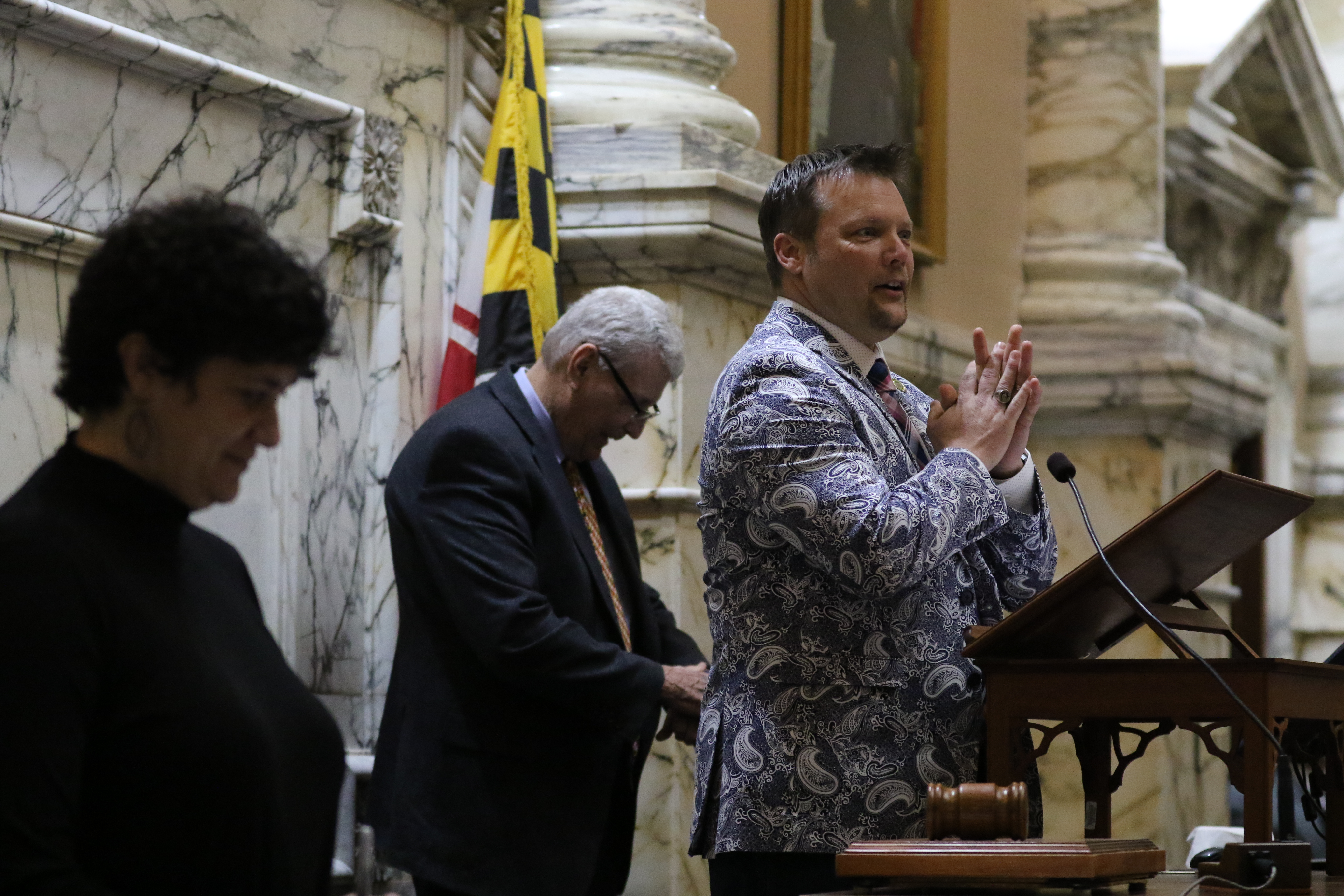 - Del. Karl Anderton of Delmar, one of only three delegates with no reelection opponents, offers the prayer in the House of Delegates. The speaker’s chief of staff Alexandra Hughes is on the left.