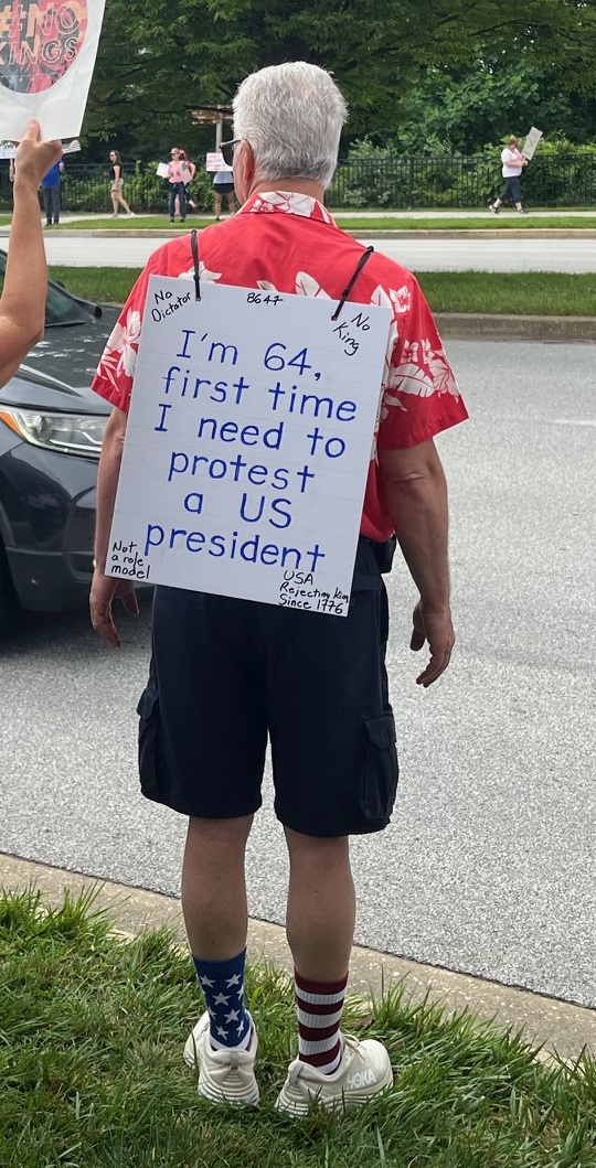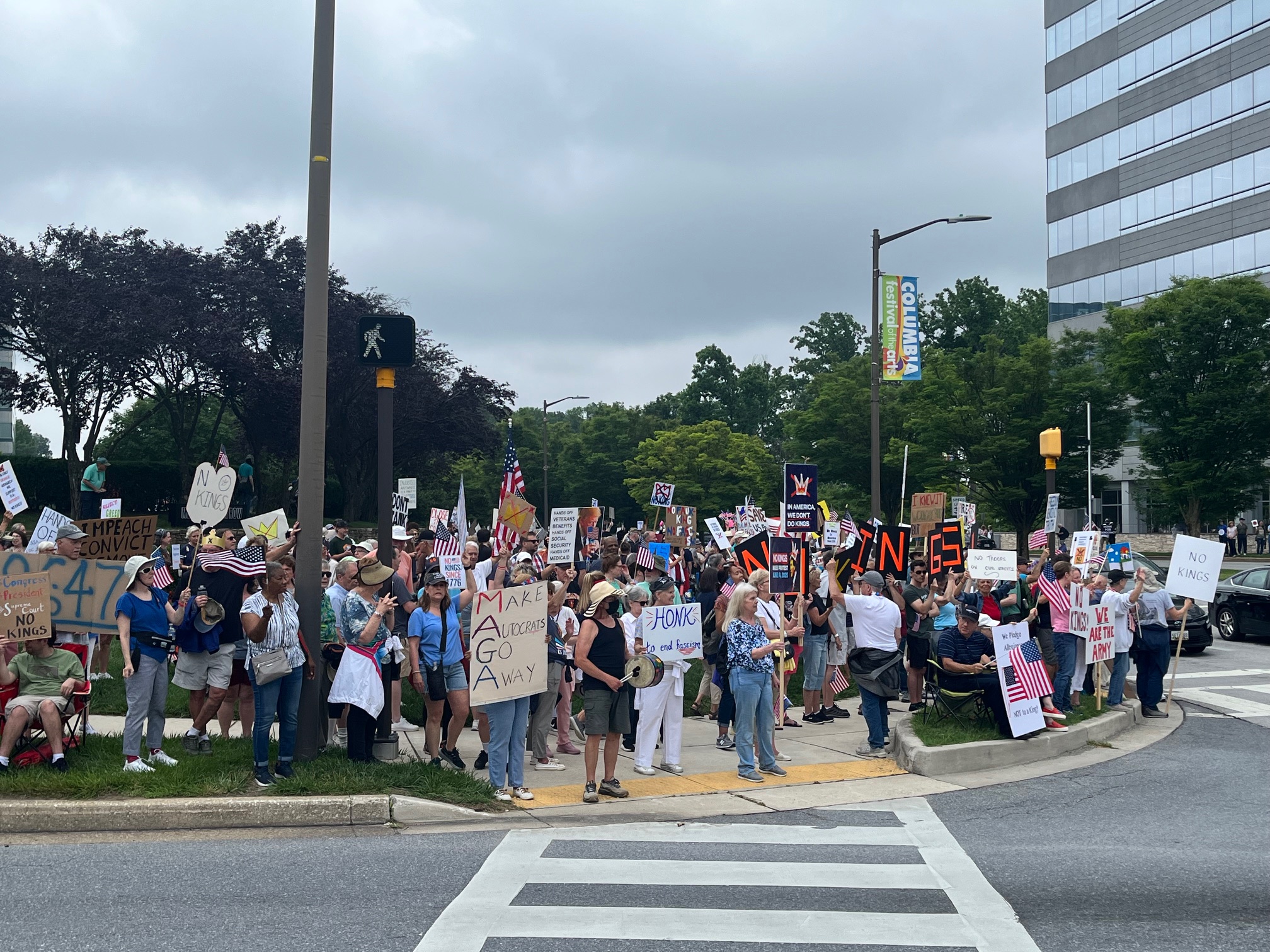 Several thousand people lined one of the busiest intersections near the Columbia Mall Saturday to protest President Trump as part of “No Kings Nationwide Day of Defiance” Saturday morning. Events like this were happening all over Maryland and the nation organized by the progressive Indivisible organization.
