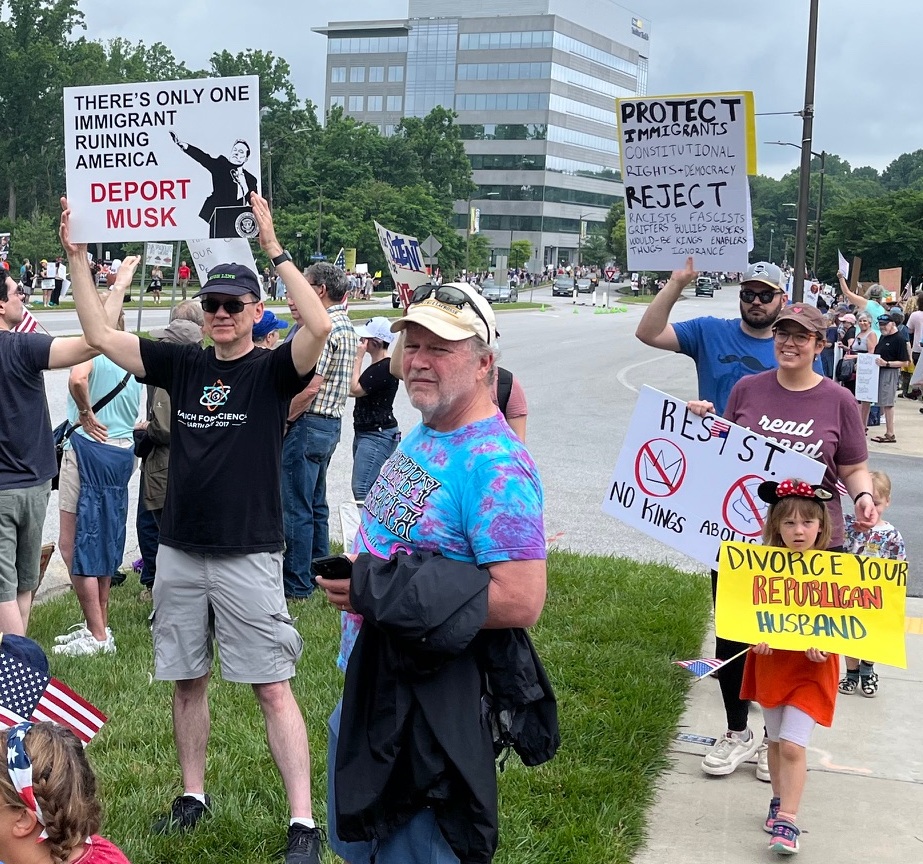 Several thousand people lined one of the busiest intersections near the Columbia Mall Saturday to protest President Trump as part of “No Kings Nationwide Day of Defiance” Saturday morning. Events like this were happening all over Maryland and the nation organized by the progressive Indivisible organization.